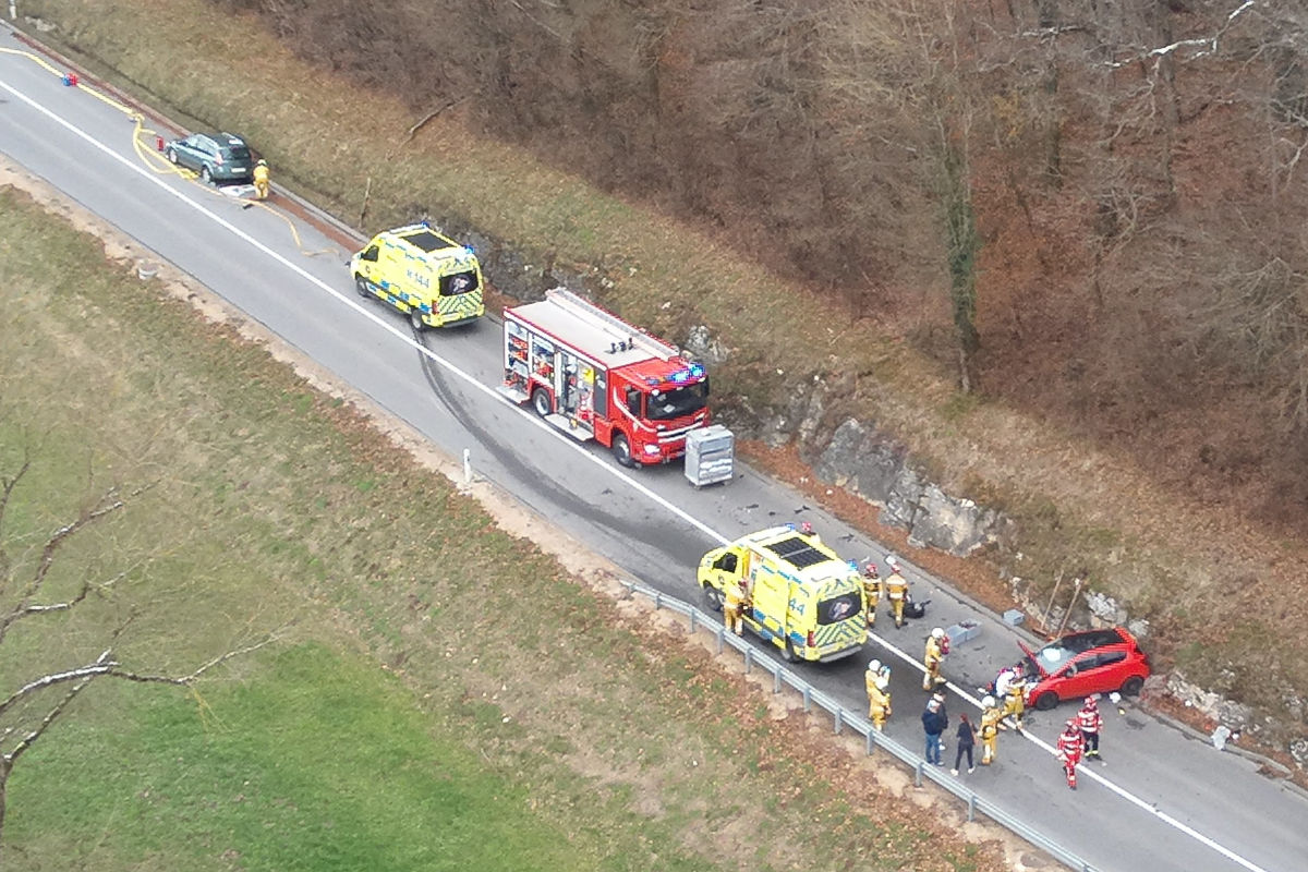 Ein entgegenkommendes Fahrzeug versuchte, dem Unfall durch Ausweichen nach links zu entgehen, doch es kam zu einer heftigen Kollision zwischen den rechten Frontecken beider Fahrzeuge. Der Fahrer des Unfallfahrzeugs blieb unverletzt, im anderen Fahrzeug gab es zwei Verletzte und eine unverletzte Person.